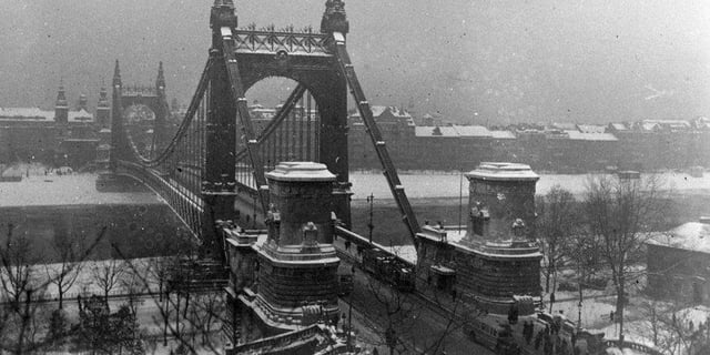 A régi Erzsébet híd még mindig a legjobb dunai híd, hóval együtt pláne.