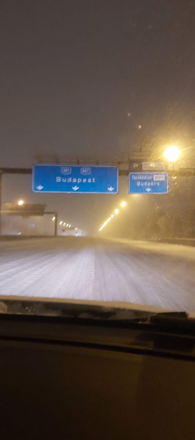 De ne aggódjatok, az összes led-es információs táblán ki van írva az M0/M6/M7 felett, hogy hókotrás meg útszórás, valszeg ettől várják a csodát