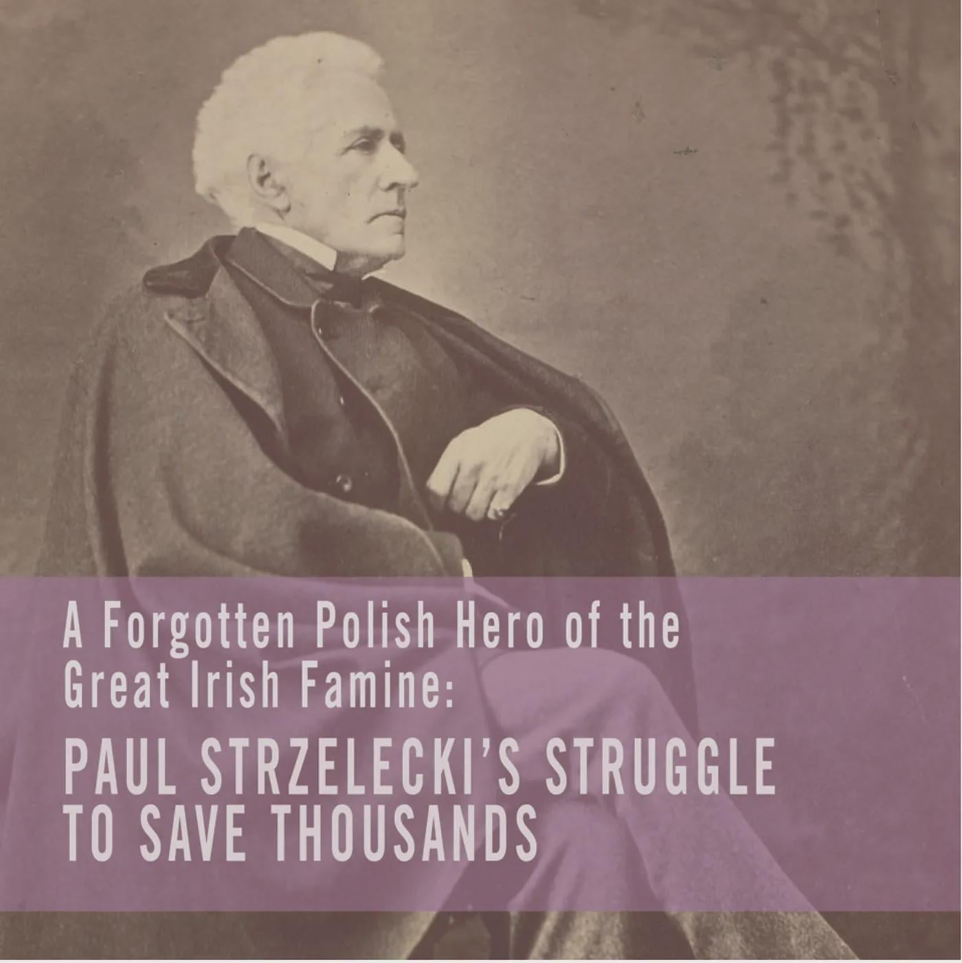 Nel 1847, durante la Grande Carestia irlandese, Paweł Strzelecki condusse una delle prime indagini sistematiche sul campo sulla fame e sulla malnutrizione tra i bambini irlandesi. I suoi rapporti hanno trasformato la fame in numeri che i governi non potevano più ignorare.