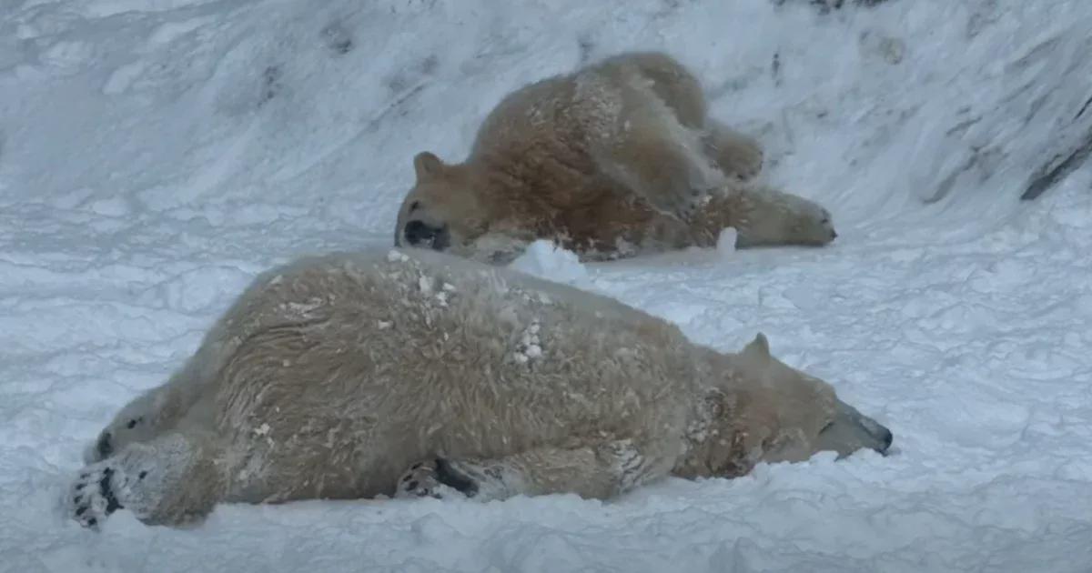 I cuccioli di orso polare dello zoo di Nyíregyháza hanno visto la neve per la prima volta