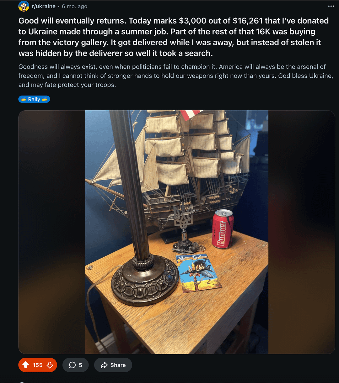 Per punire i russi per ogni azione orribile intrapresa nel 2025, la fondazione Prytula ha creato un fondo per i droni a favore dell’Ucraina. "Sciame Infinito di Vendetta" che ho elencato qui: https://prytulafoundation.org/about/projects/actual/riy-pomsty-unlimited