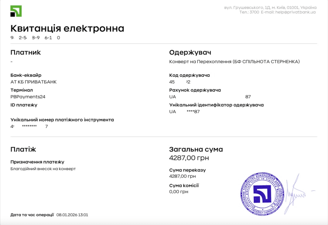 Attualmente, il totale ammonta a ≈$ 36.963 USD (₴ 1.584.400 grivna), lasciando ulteriori $ 29.703 USD (₴ 1.273.200 grivna) stanziati per il 2026, quindi altri $ 33.333 USD (₴ 1.428.800 grivna) per il 2027.
