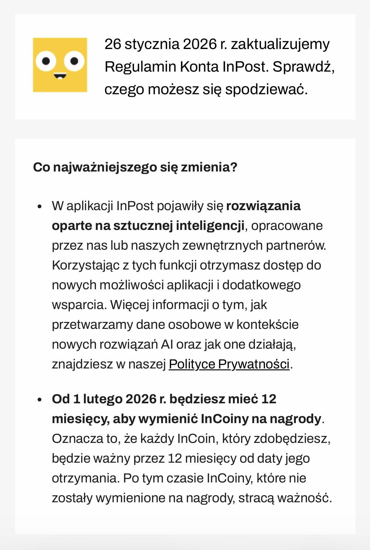 Okropnie irytuje mnie co oni zrobili z aplikacjÄ… inPostu. Ja naprawdÄ™ mam w dupie wasze monetki, ja mam w dupie wasze AI, ja chcÄ™ tylko odebrać paczkÄ™ w przejrzystej aplikacji, a nie w Å›mieciowisku a’la Å»appka