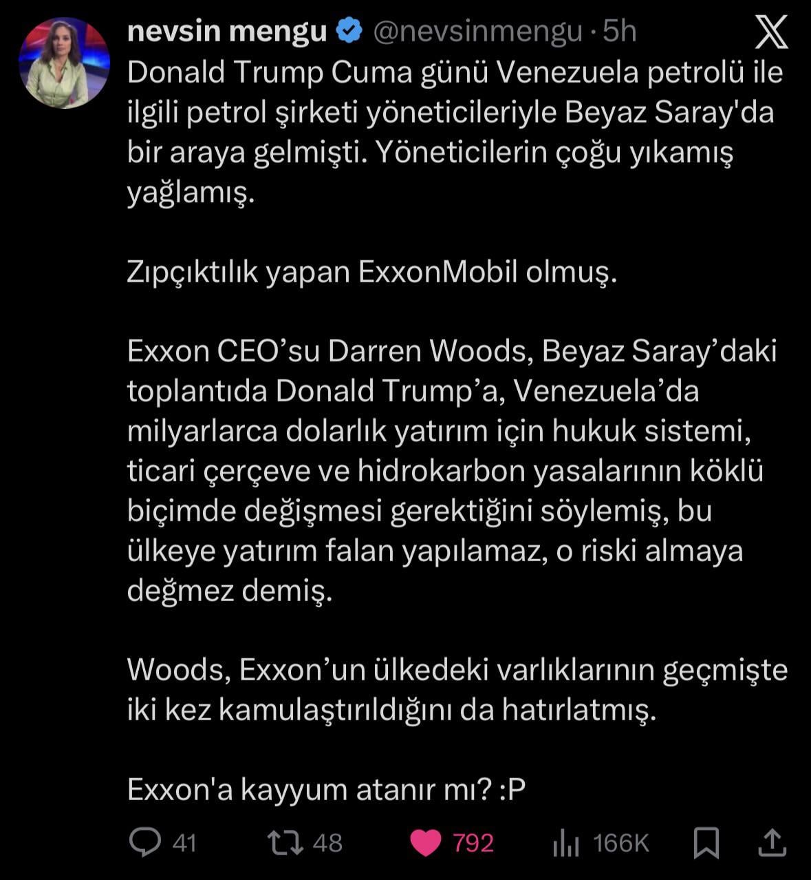 PaperboiPaperbo on 10/01/2026 09:05 işin düğümü exxon ceo’suyla çözülecekse ceo’yu istifaya zorlarlar merak etmeyin. abd türkiye’den daha çok türkiyedir.
