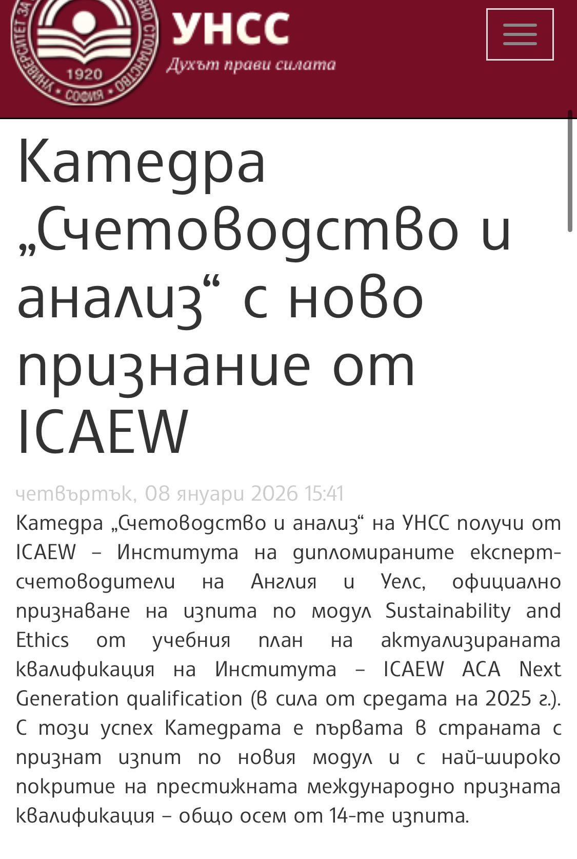 Il dipartimento di contabilità è uno dei più antichi dell’UNSS, fondato nel 1920. La sua collaborazione con l’Institute of Chartered Accountants di Inghilterra e Galles ha segnato progressi e riconoscimenti.