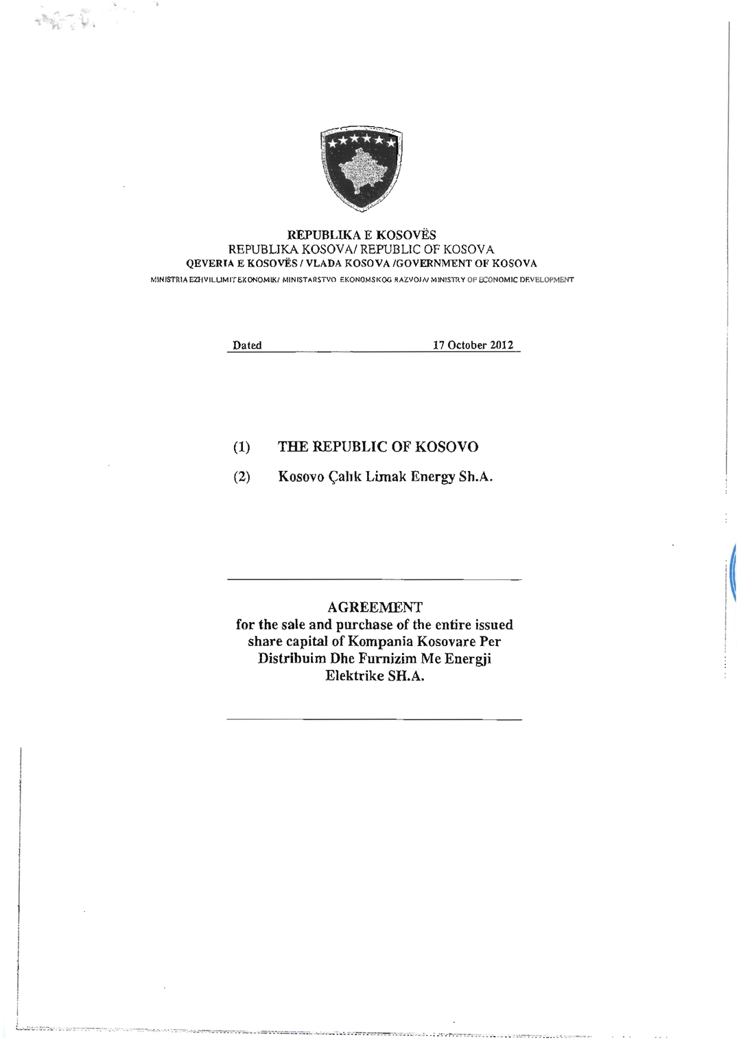 La fonte del documento di privatizzazione/vendita dei KED e questo non è stato pubblicato integralmente, mancano alcune pagine.