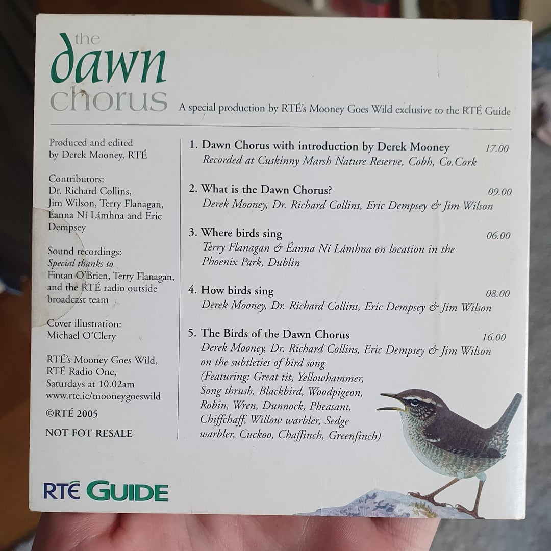 Ho aiutato mia madre a cambiare casa e ho trovato questo CD mai aperto dei Dawn Chorus del 2005, il primo RTÉ che penso. Per qualche motivo c’erano 2 copie identiche, quindi ho preso quella di riserva da ascoltare.