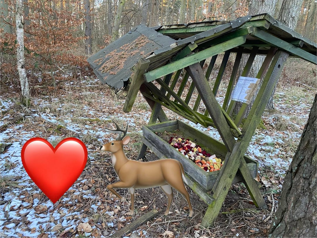 Oggi sono andato a fare una passeggiata su un sentiero diverso e mi sono imbattuto in un pascolo. Il pane al pascolo è, nonostante le buone intenzioni, una cattiva idea. La scelta più sicura sono gli ortaggi a radice! 🥕🫜🍠🥔🦌