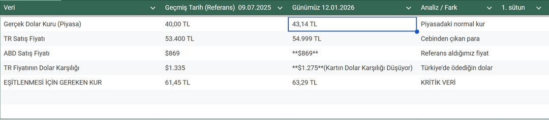 Per esempio; Prezzo di vendita negli Stati Uniti $ 869 Un prodotto disponibile in Turchia $ 1.335 Ha un prezzo nella gamma. È interessante notare che, sebbene la lira turca perda costantemente valore rispetto alla valuta estera (ad esempio, anche quando il tasso di cambio aumenta da 40 TL a 43 TL), il prezzo del prodotto in TL rimane costante. In normali condizioni di mercato, il venditore deve riflettere l’aumento del tasso di cambio nei prezzi per preservare il proprio capitale. Tuttavia, i venditori in Türkiye fissano il prezzo a un prezzo molto più alto, non in base al tasso di cambio attuale, ma anticipando i rischi futuri e l’inflazione. “tariffa stimata” (ad esempio 63 TL) Lo sistemano.