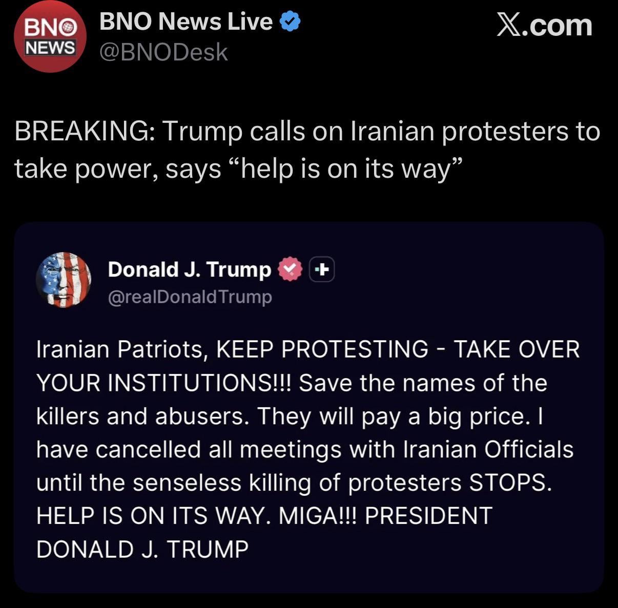 Macar cineva ii ajuta, numarul de morti e raportat a fi peste 12000 de civili in momentul de fata. Nu ca Trump face asta de dragul de a ajuta, dar cam toata lumea ar beneficia de caderea Iranului, ei fiind un sponsor principal al terorismului in lume, pe langa ajutorul oferit Rusiei in razboiul din Ucraina.