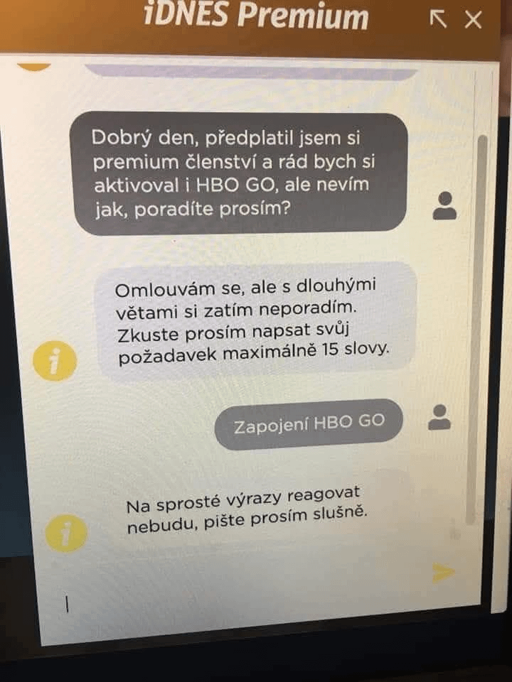 Jestli to je AI, kterou naprogramovala redakce Idnes, tak to pravděpodobně má jen tyto 2 odpovědi natvrdo.