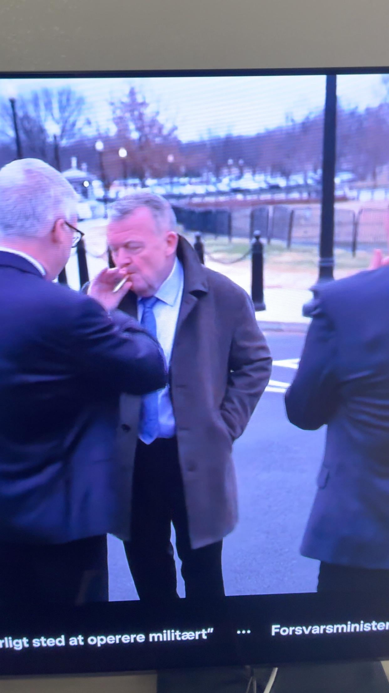 Lars Løkke kørte total Don stil. Først en knuckle med ambassadøren og så blev der delt smøger ud. Han så ikke rød ud i kammen, så det må ha været et godt møde.
