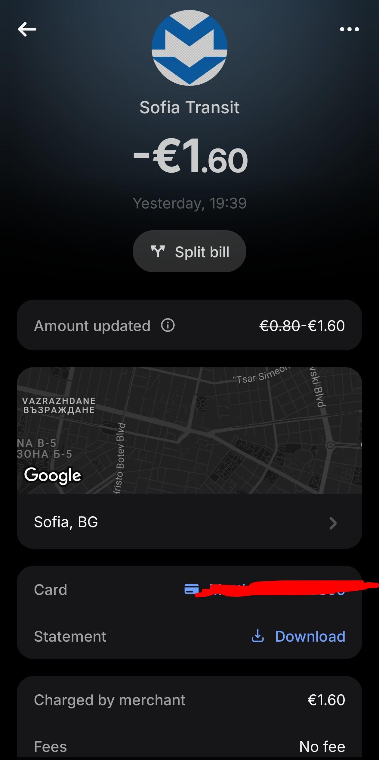 Quando faccio il check-in con la carta Revolut mi risulta che il biglietto costa 80 centesimi, ma fino a 1 giorno dopo l’importo viene aggiornato a 1,60 euro?!