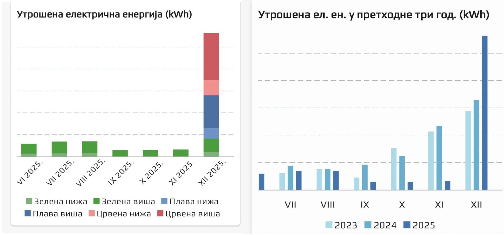Oggi entro nell’applicazione e ho una cosa da vedere: mi hanno trasferito il consumo non letto e lo hanno calcolato per un mese (dicembre): circa 3000 kWh ovvero 69000 dinari!