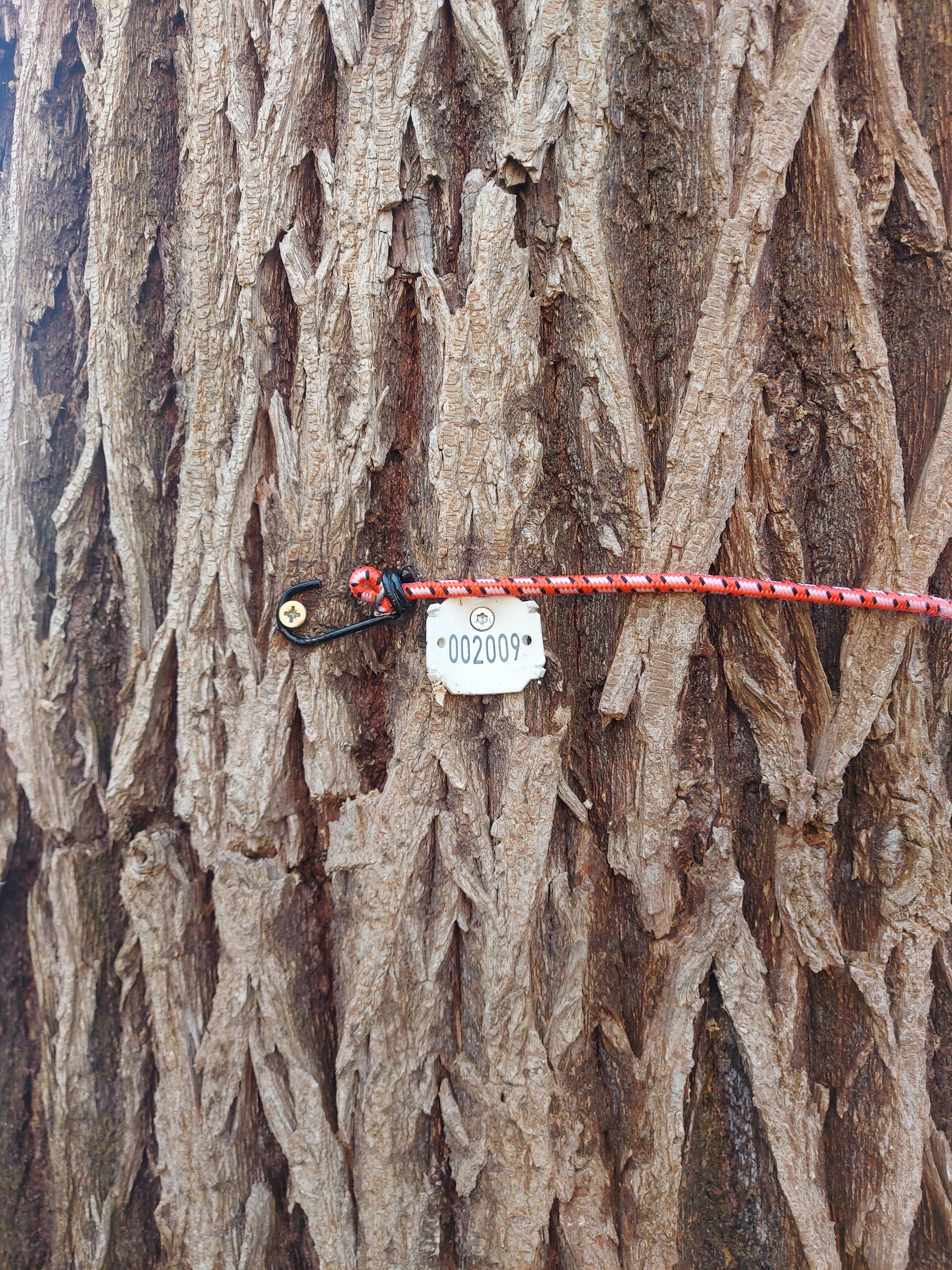 A tree number is a unique identifier (usually a plaque with a number) assigned to trees for easy identification for tree registers, maintenance and monitoring, so that they can be quickly located and their condition documented, often with special aluminium or plastic plaques that are professionally attached to the trunk. It is an important tool for local authorities, forestry operations and horticulture to manage their tree population and organise tree maintenance efficiently.