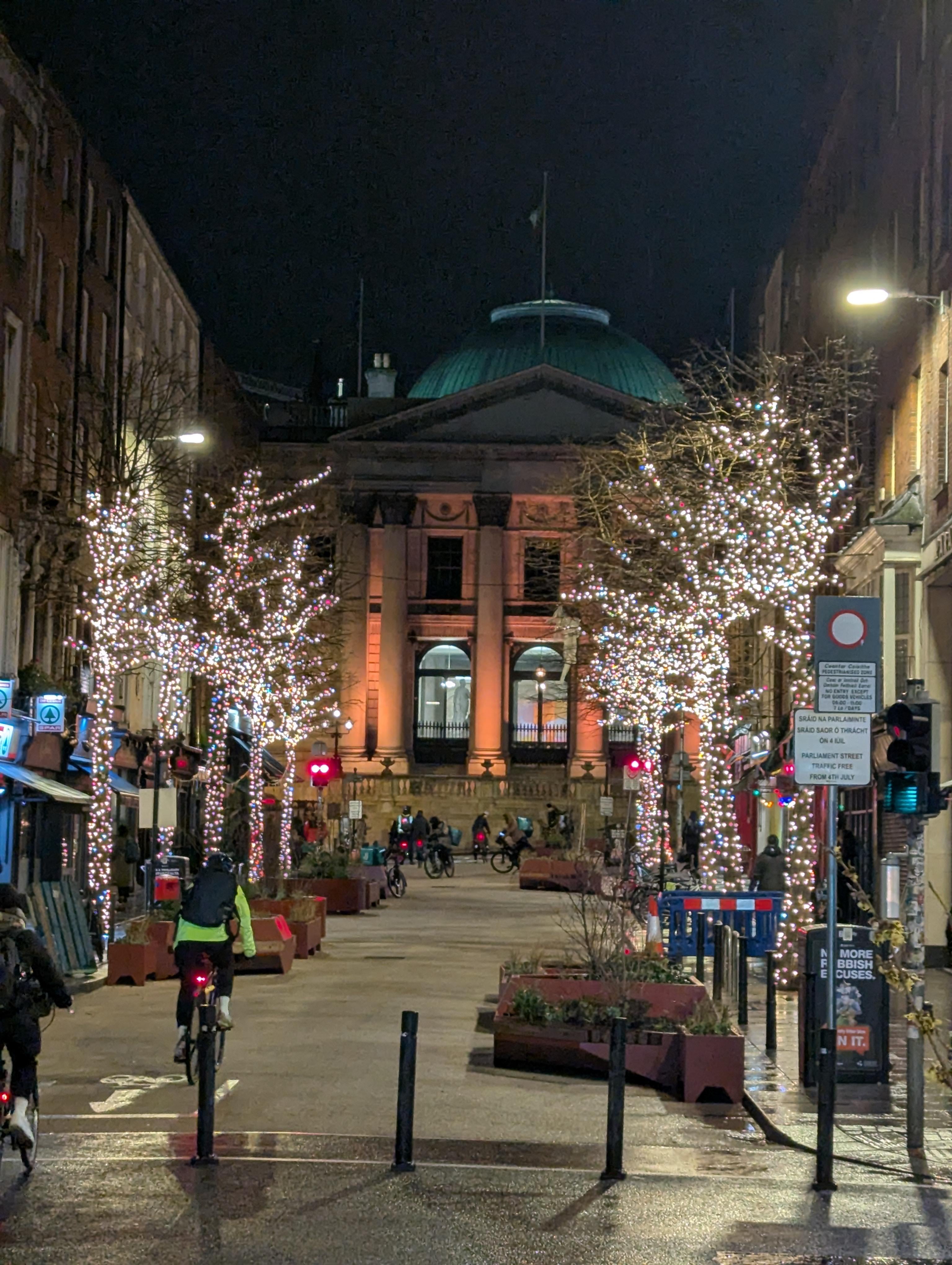 Ho vagato per incontrare un amico per mangiare (basilico tailandese nel quartiere italiano senza nome… il cibo era comunque fantastico). Parliament Street ha attirato la mia attenzione per il suo aspetto europeo, Dublino è diventata più europea in termini di estetica. Le luci andrebbero mantenute