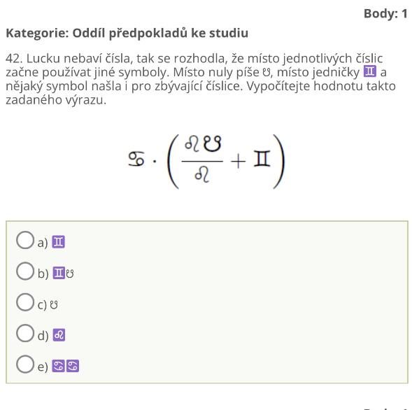 4. odpověď je e) .. první výraz v závorce je 10 .. +1 = 11 .. * ♋︎ = ♋︎♋︎