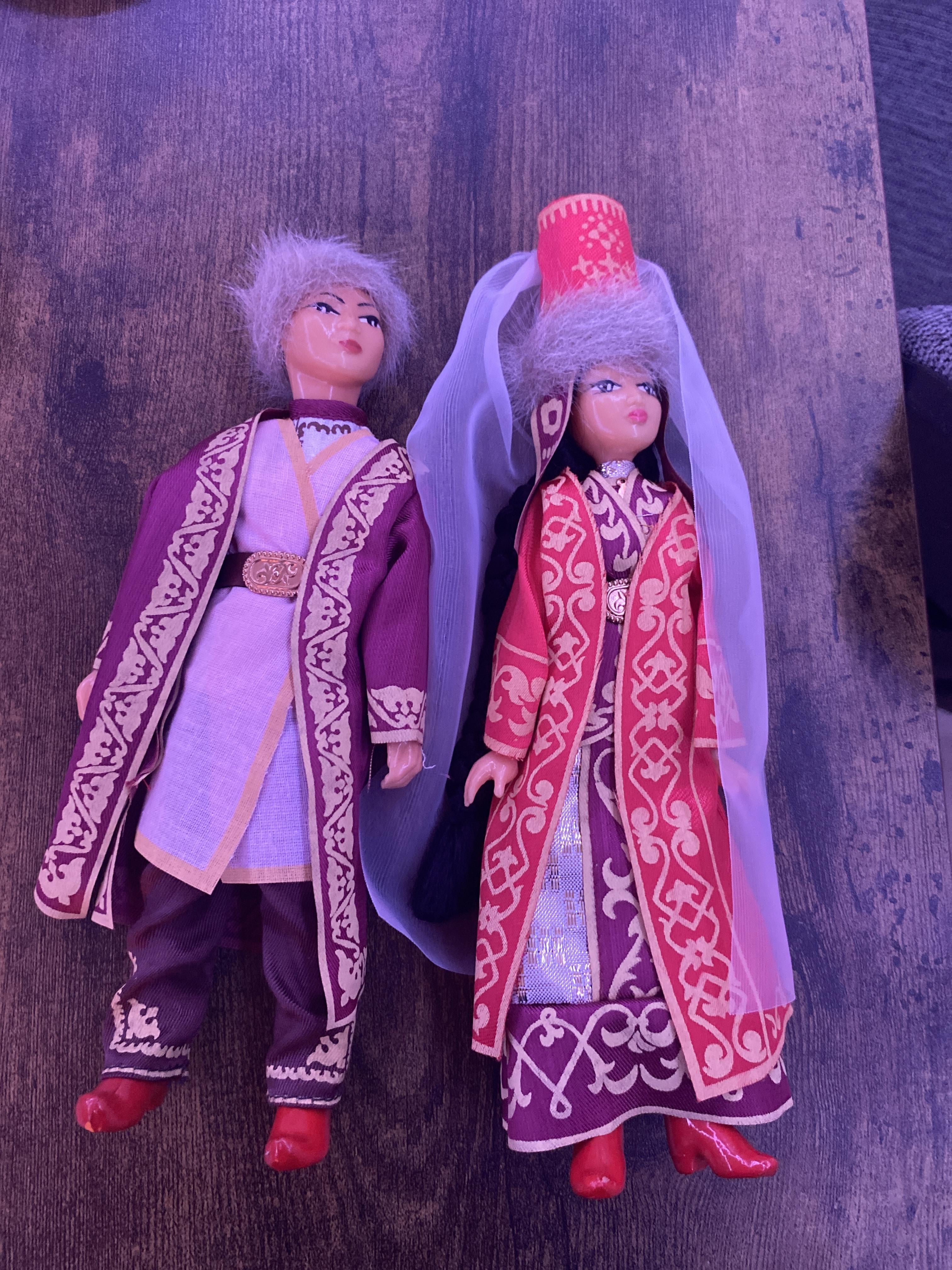 Li ho presi in un negozio dell’usato. Ho provato a cercarle online e alcune fonti hanno detto che erano bambole sovietiche azerbaigiane e altre hanno detto bambole sovietiche kazake, l’abbigliamento o lo stile sembrano assomigliare all’abbigliamento tradizionale azerbaigiano? Lo chiedo anche alla pagina del Kazakistan per vederlo.
