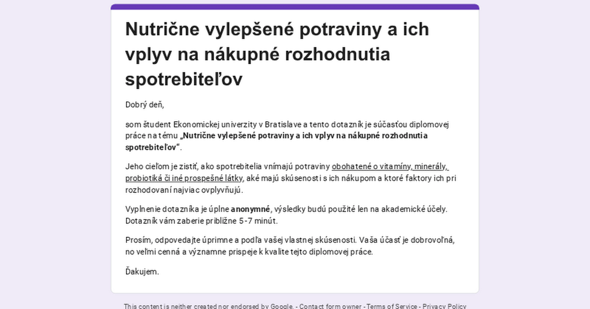 [All][6m] Nutrične vylepšené potraviny a ich vplyv na nákupné rozhodnutia spotrebiteľov.