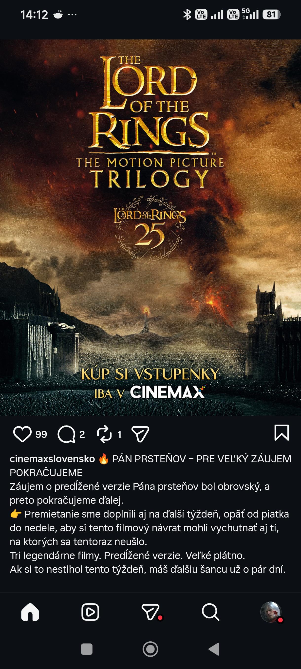 Skontrolujte si najblizsi Cinemax, zatial viem len o Bory mall ze obnovil buduci tyzden – piatok/sobota/nedela kazdy den iny film.