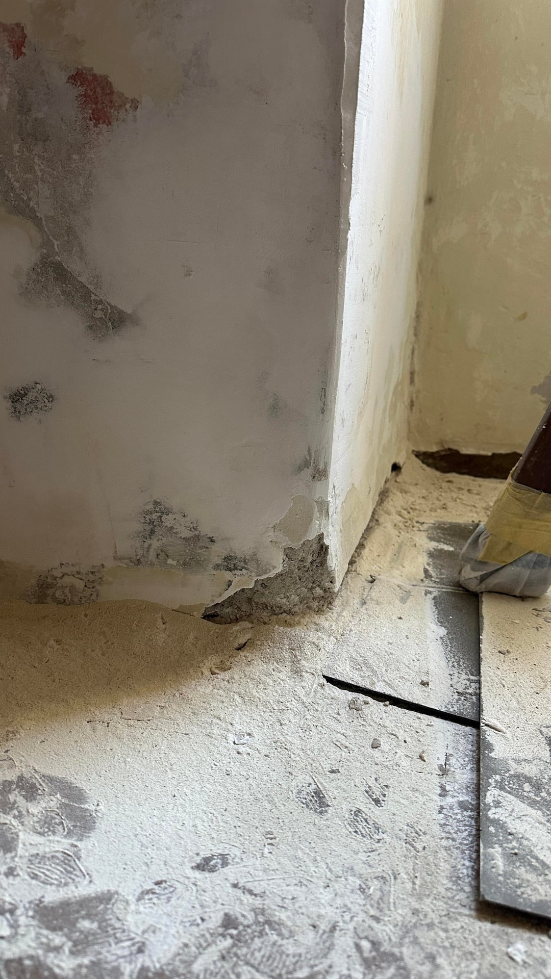 (la polvere che vedi è dovuta alla carteggiatura delle pareti per la preparazione all’emulsione e alla successiva tinteggiatura)