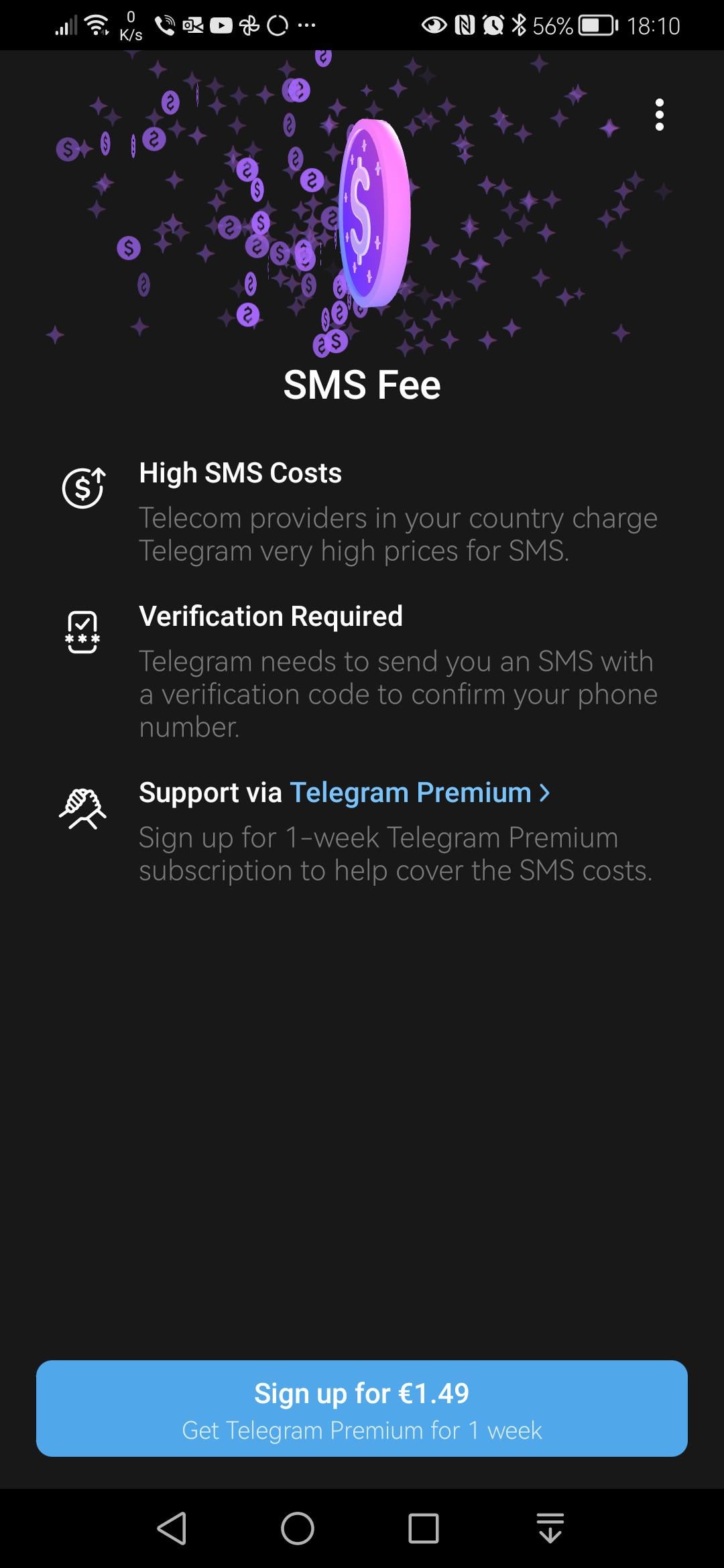 Sono un utente Telegram da un paio d’anni. Recentemente, con un aggiornamento, l’app si è ripristinata e ora richiede il pagamento per iscriversi agli SMS?? Posso anche usare l’app, ma funziona sul PC. Sta succedendo a qualcun altro? Cosa fare?