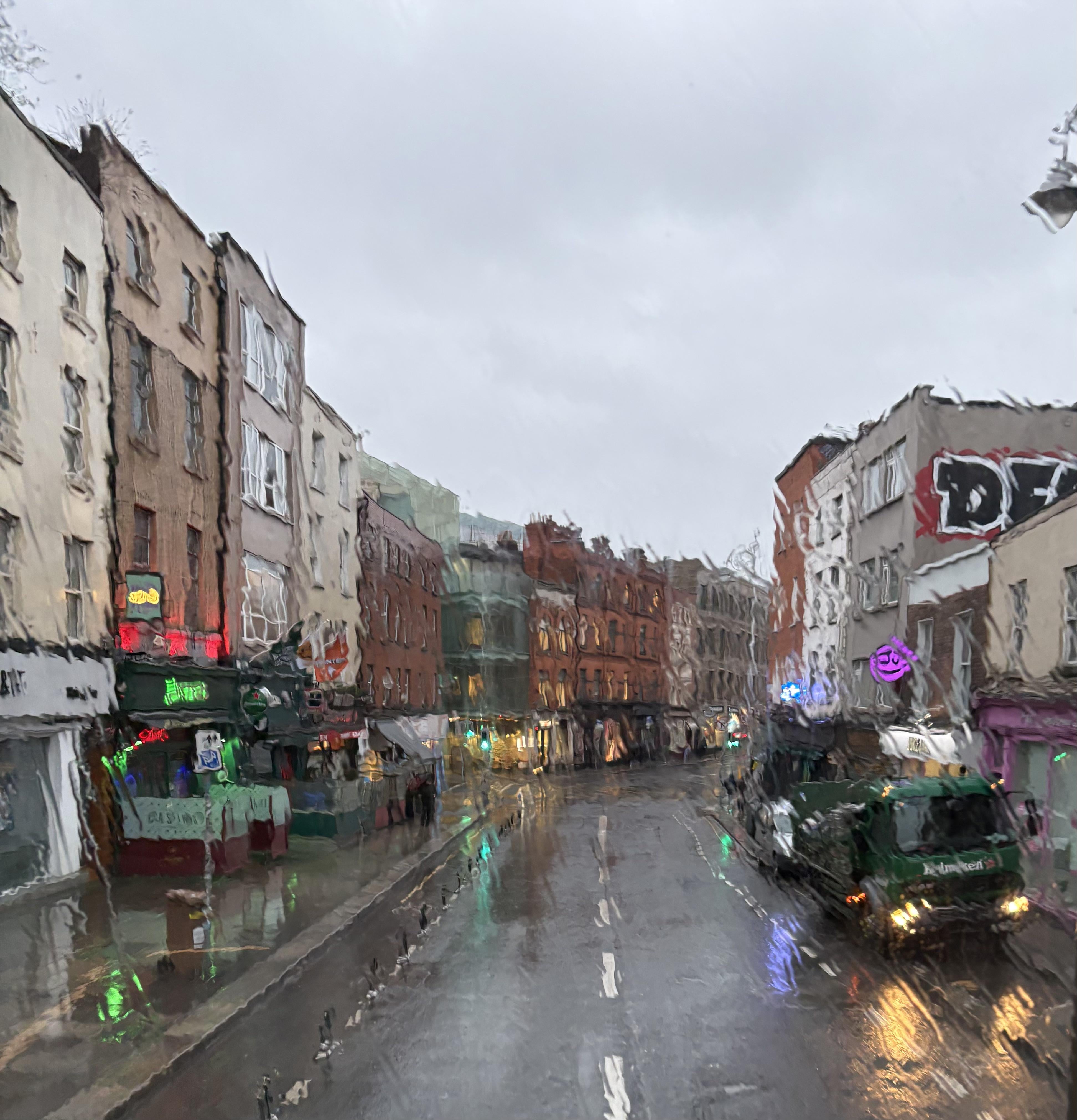 La pioggia sul finestrino dell’autobus di Dublino ha trasformato la città in un dipinto ad olio