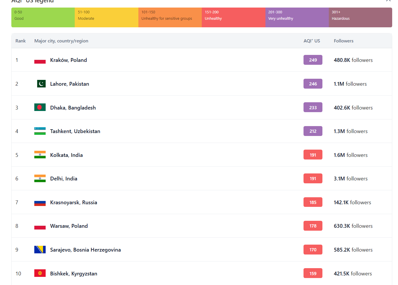 I feel like people are overlooking that this updates hourly. Krakow’s down to fifth now [https://www.iqair.com/world-air-quality-ranking](https://www.iqair.com/world-air-quality-ranking) . Not great obviously but you need a longer slice of time to get an idea of comparisons.