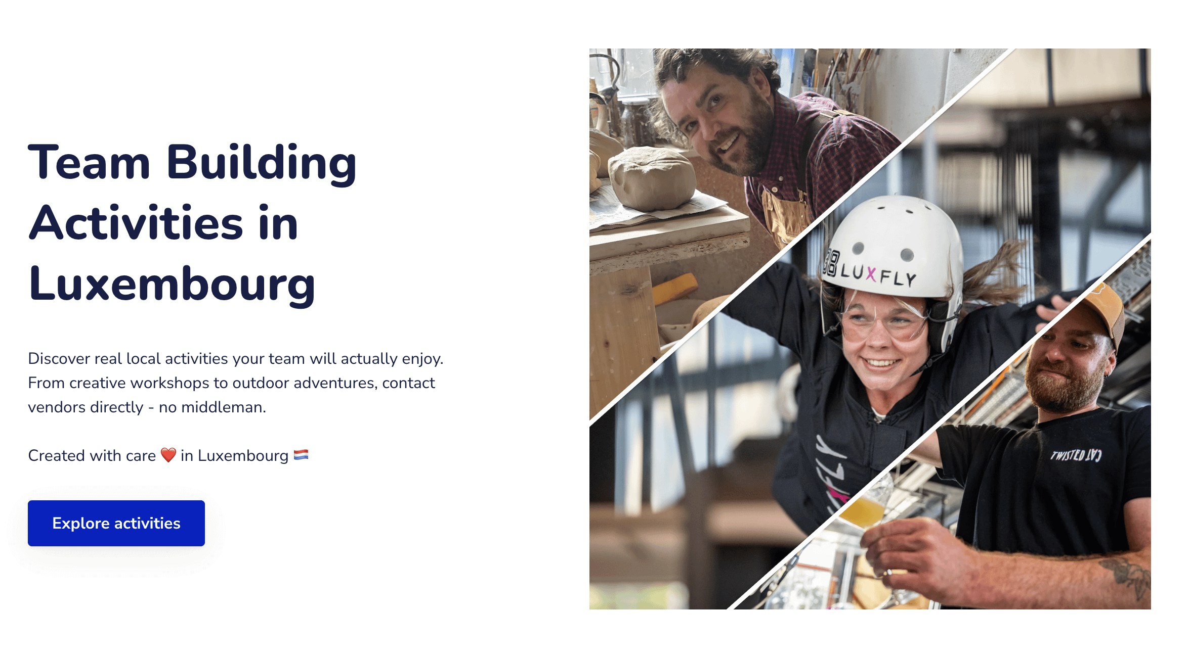 L’anno scorso ho annunciato di aver lanciato un sito Web per aiutare le aziende lussemburghesi a trovare idee per organizzare eventi di team building e contattare direttamente i fornitori (posta originale).