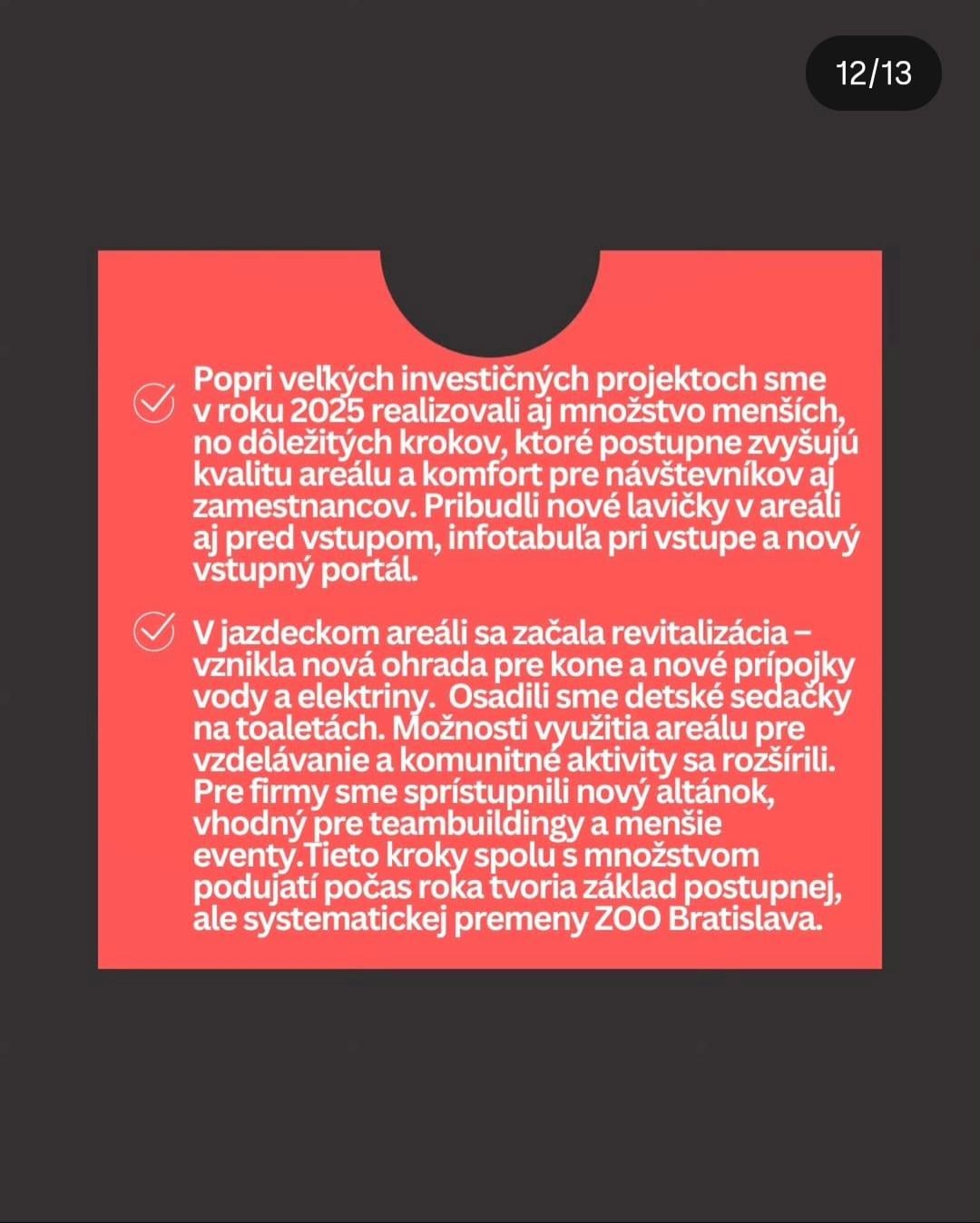 Warm-East5549 on 21/01/2026 14:06 som velmi rad ze sa zoo zveladuje nielen pre navstevnikov ale hlavne pre zvierata. podmienky v akych niektore zili, boli naozaj biedne a bol na to tazky pohlad (hlavne mackovite selmy v malych vybehoch). tesi ma to a drzim palce