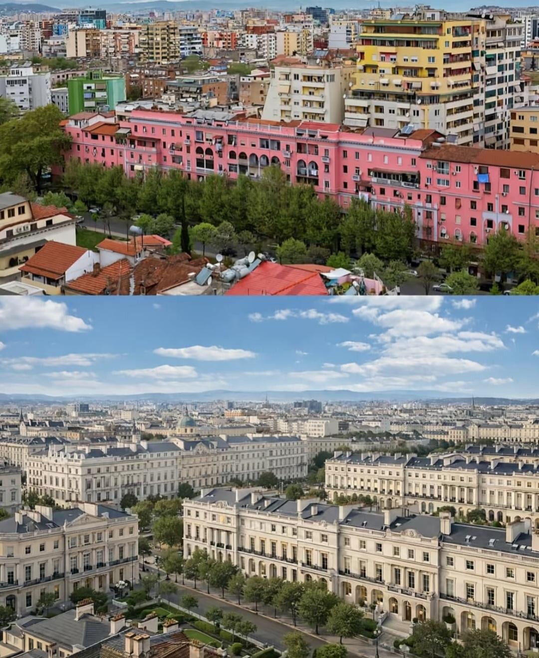 Se immagini Tirana in stile Regency, ci sarebbero facciate neoclassiche, colonne eleganti e balconi in ferro, un’urbanizzazione ben organizzata e tranquilla e una natura bella e tipica della zona.