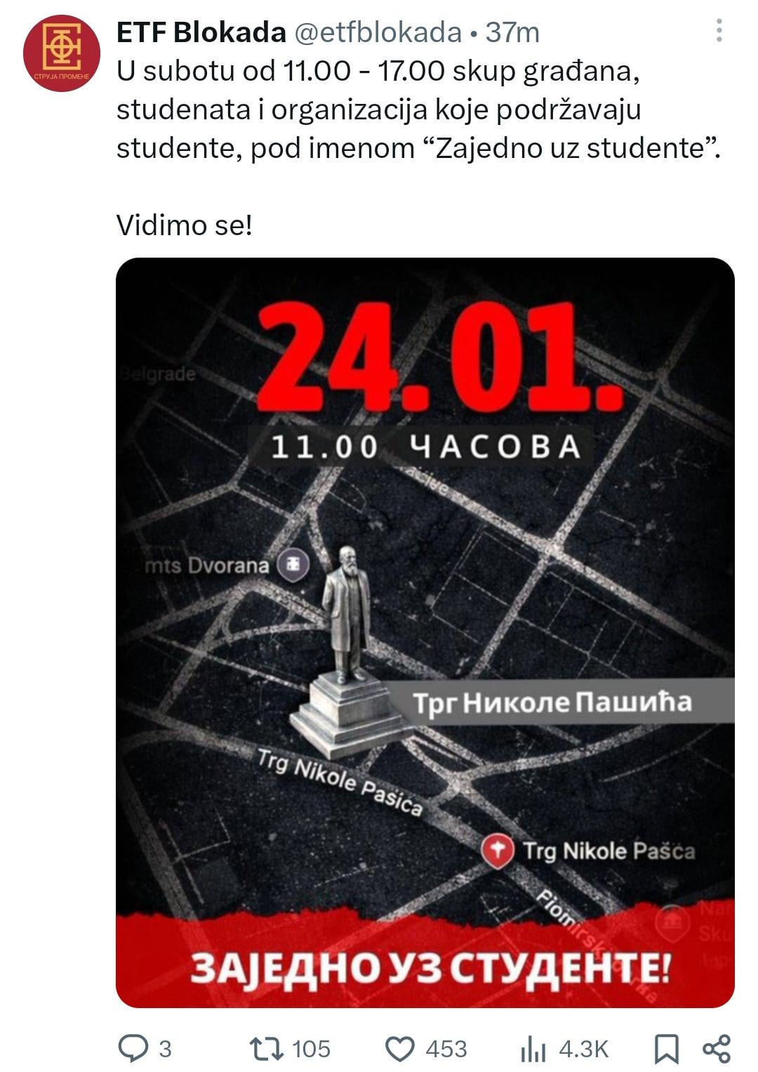Insieme agli studenti – sabato ore 11, piazza Nikola Pašića. Un gruppo di cittadini, studenti e organizzazioni che sostengono gli studenti. Quindi contiamo.