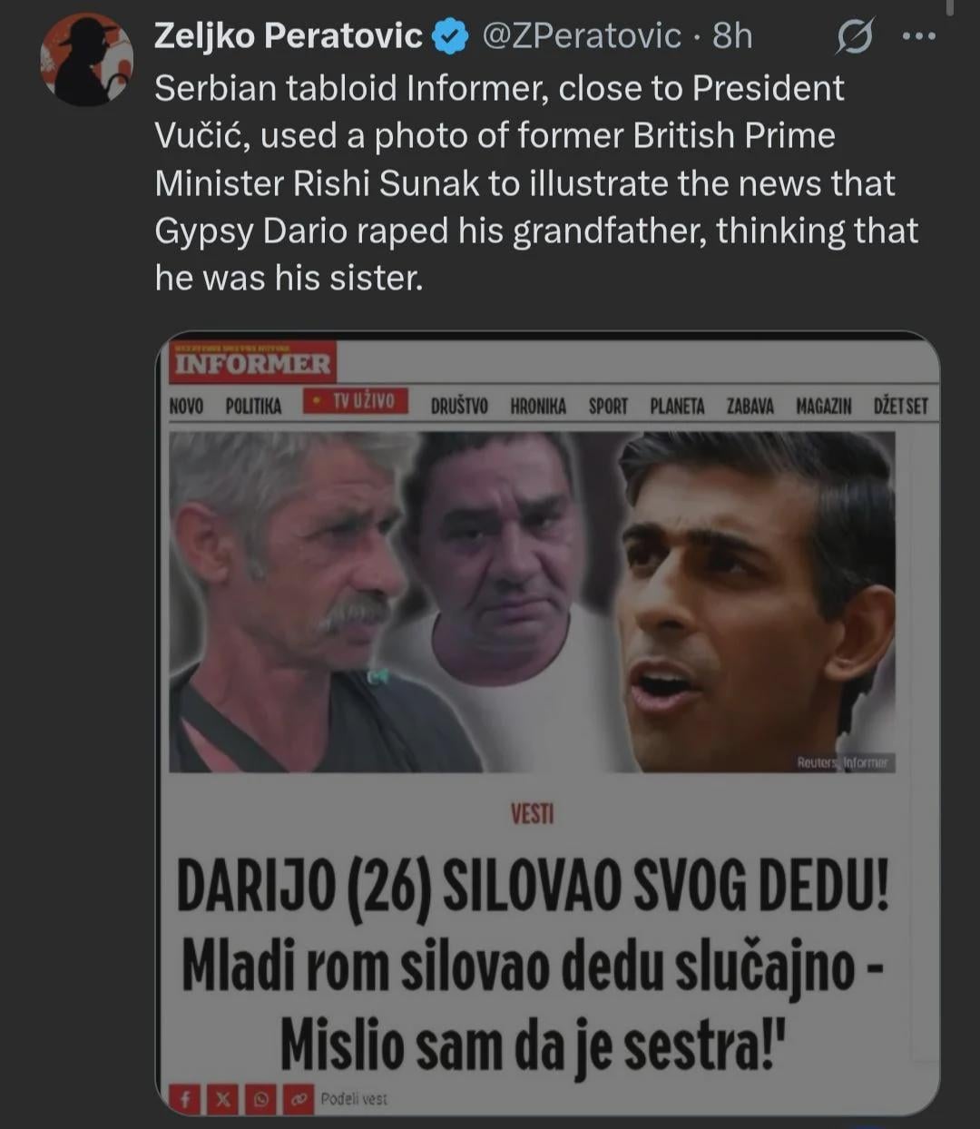 Sunak bi tako trebao da ih tuzi za sve par za ovo i dobio bi ih 1/1 i mozda i zatvorio jer bi im uzeo milione. Ali nece on da se bakce sa smece, verovatno i ako vidi nasmejao bi se, rekao bi “jbt kakvi divljaci uopste zive u ovoj zemlji hvala bogu sto ne moram da se patim sa njima” i nastavio sa zivotom.