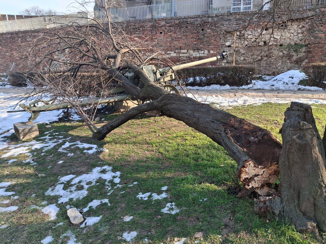 L’intero museo è in disordine, gli oggetti esposti sono ricoperti da ruggine e muschio, i pannelli informativi sono piegati, rotti o addirittura assenti. C’è fango ovunque e il sentiero che passa accanto ai reperti è caduto in rovina. La parte dove si trovano i siluri e le altre armi navali è completamente ricoperta di vegetazione, per non parlare del fatto che l’albero è caduto sul cannone tedesco Pak 40. Dall’aspetto dell’albero, direi che è così da molto tempo. Inoltre, metà dei cannoni sono caduti dalla tribuna e nessuno sta facendo nulla.