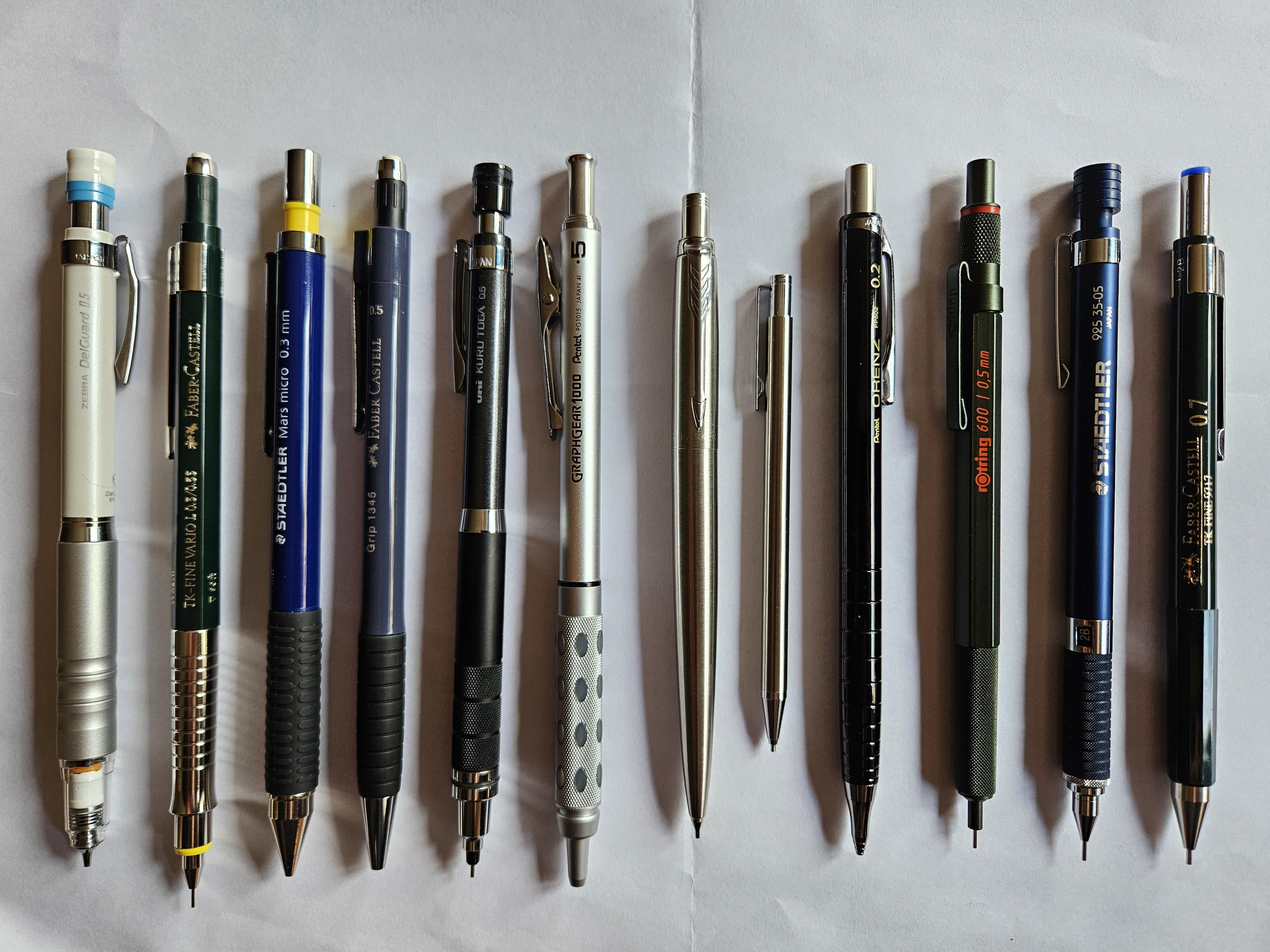 In še ena slikca moje skromne “zbirke” brez izgubljenega navadnega Uni Shalakuta (tisto dvoje desno ne vem če se kategorizira kot tehnični svinčnik, ampak pomojem bi se lahko)