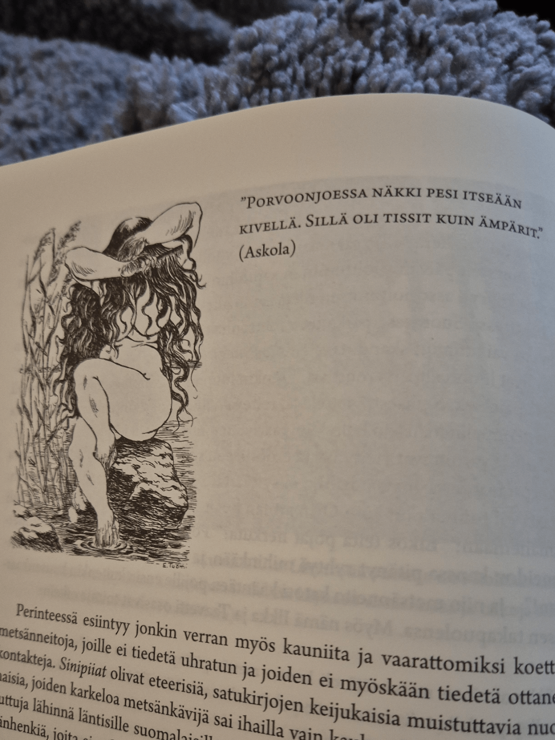 L’ho trovato in un libro intitolato "Fede popolare finlandese" di Risto Pulkkinen. È a pagina 76 e parla di näcken, guardia forestale (fata?) e sirena. https://i.redd.it/o1o36f8mm4fg1.png di PreposterousClam