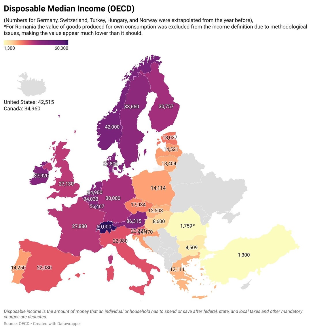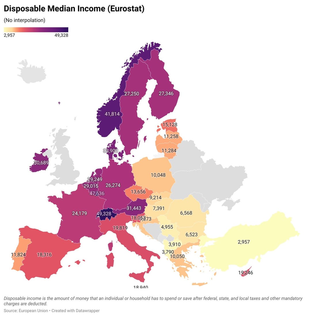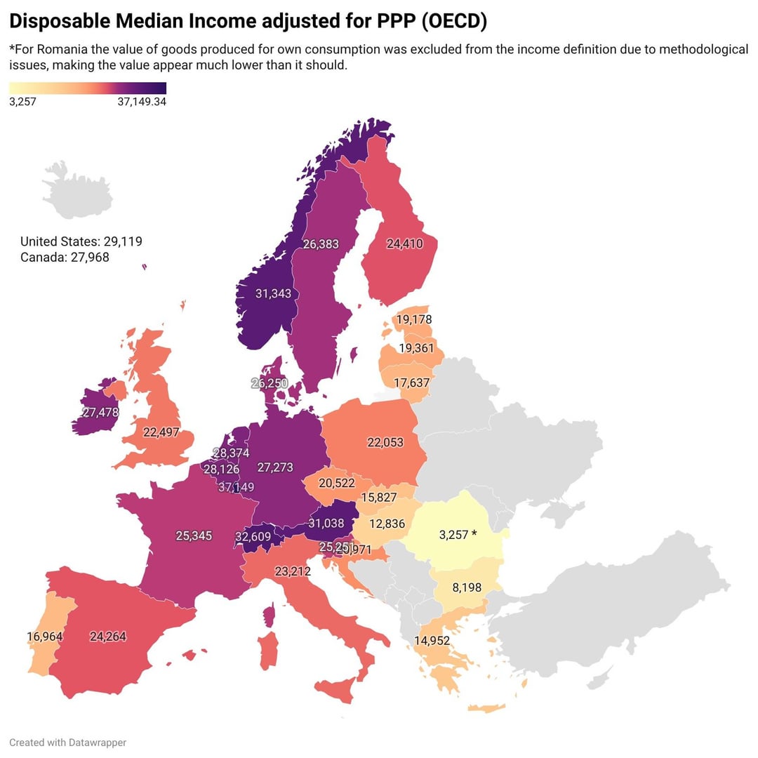 Confronto del reddito mediano disponibile (PPA e nominale) tra Eurostat e OCSE https://www.reddit.com/gallery/1ql30di di ItHappensSo