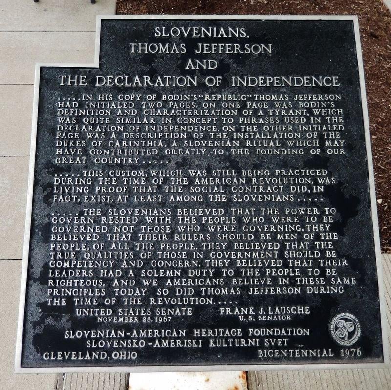 Sloveni. Thomas Jefferson e la Dichiarazione di Indipendenza degli Stati Uniti