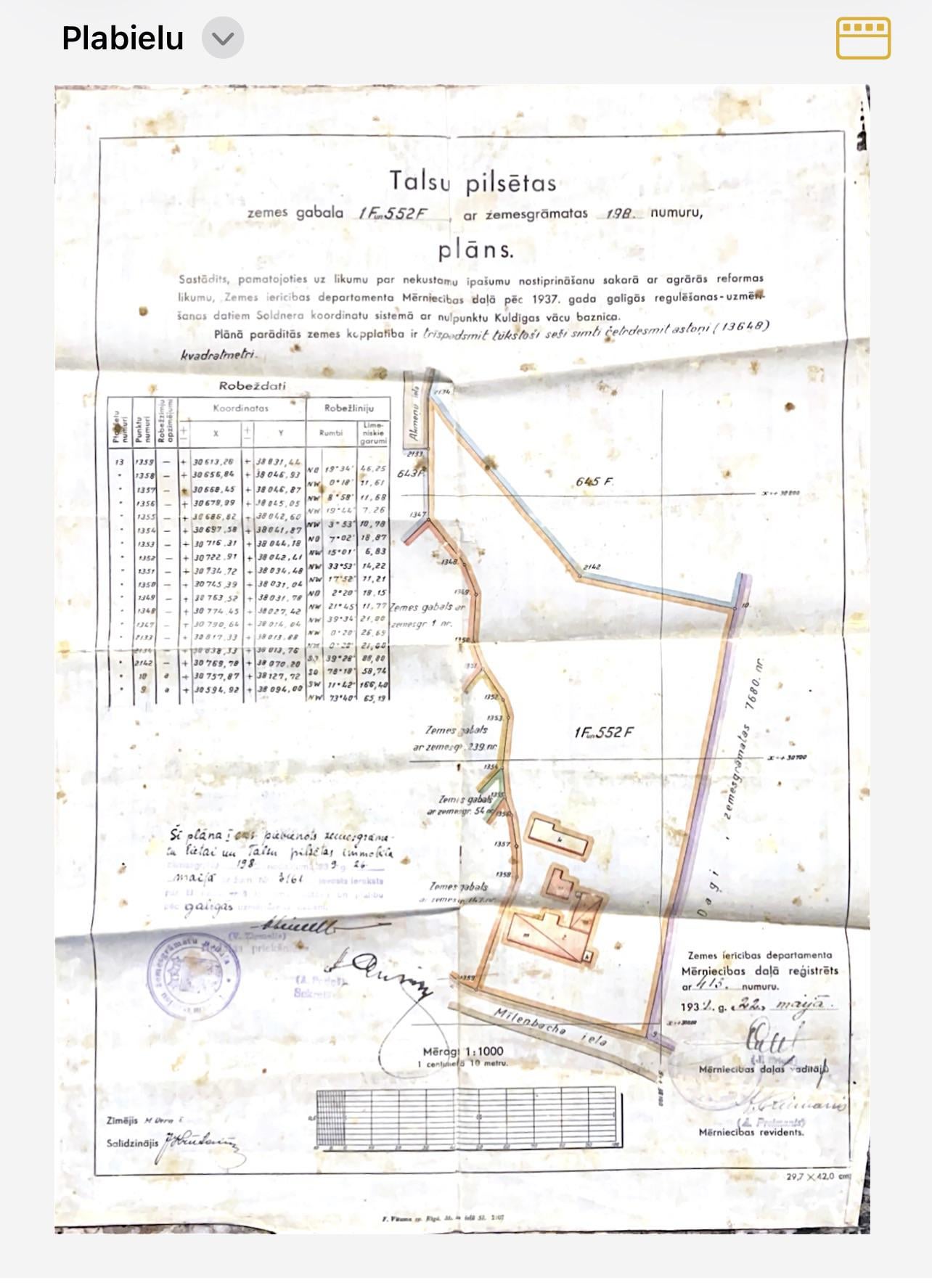 Ho trovato questo documento tra gli effetti personali di mio padre dopo la sua scomparsa l’anno scorso. Lui e i suoi genitori (i miei nonni) fuggirono dalla Lettonia durante la Seconda Guerra Mondiale durante l’occupazione sovietica. Sfortunatamente non parlo né leggo il lettone. Dopo alcune ricerche ho scoperto che questa proprietà si trova a Talsi o nelle sue vicinanze. Vorrei saperne di più su questa zona e cosa potrebbe essere successo a questa proprietà. Vorrei anche visitare la Lettonia per comprendere meglio mio padre che molto raramente parlava del suo paese d’origine. Qualsiasi consiglio o direzione sarebbe molto apprezzato.