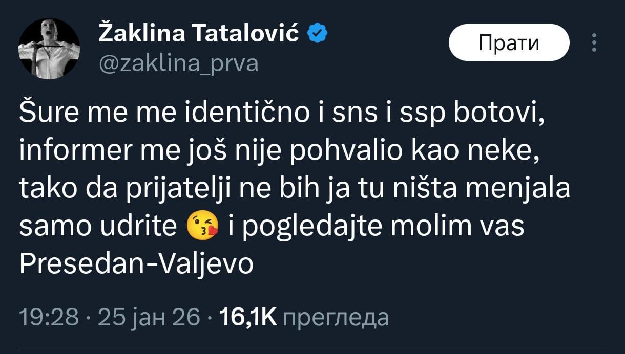 Против новинара Н1 и Нове су се окренуле неке и бивше колеге. Ја стварно морам да издвојим Ивана Ивановића, који лик буквално ботује за ССП већ месецима и још пре меки дан ретвитује пост бота ССП-а који упоређује Невену Маџаревић с Јованом Јеремић, где се са подругљивим тоном говори како је Јована 500 пута гледанија. Буквално се кусо и репато уротило и против тих новинара, али поготово против студената.