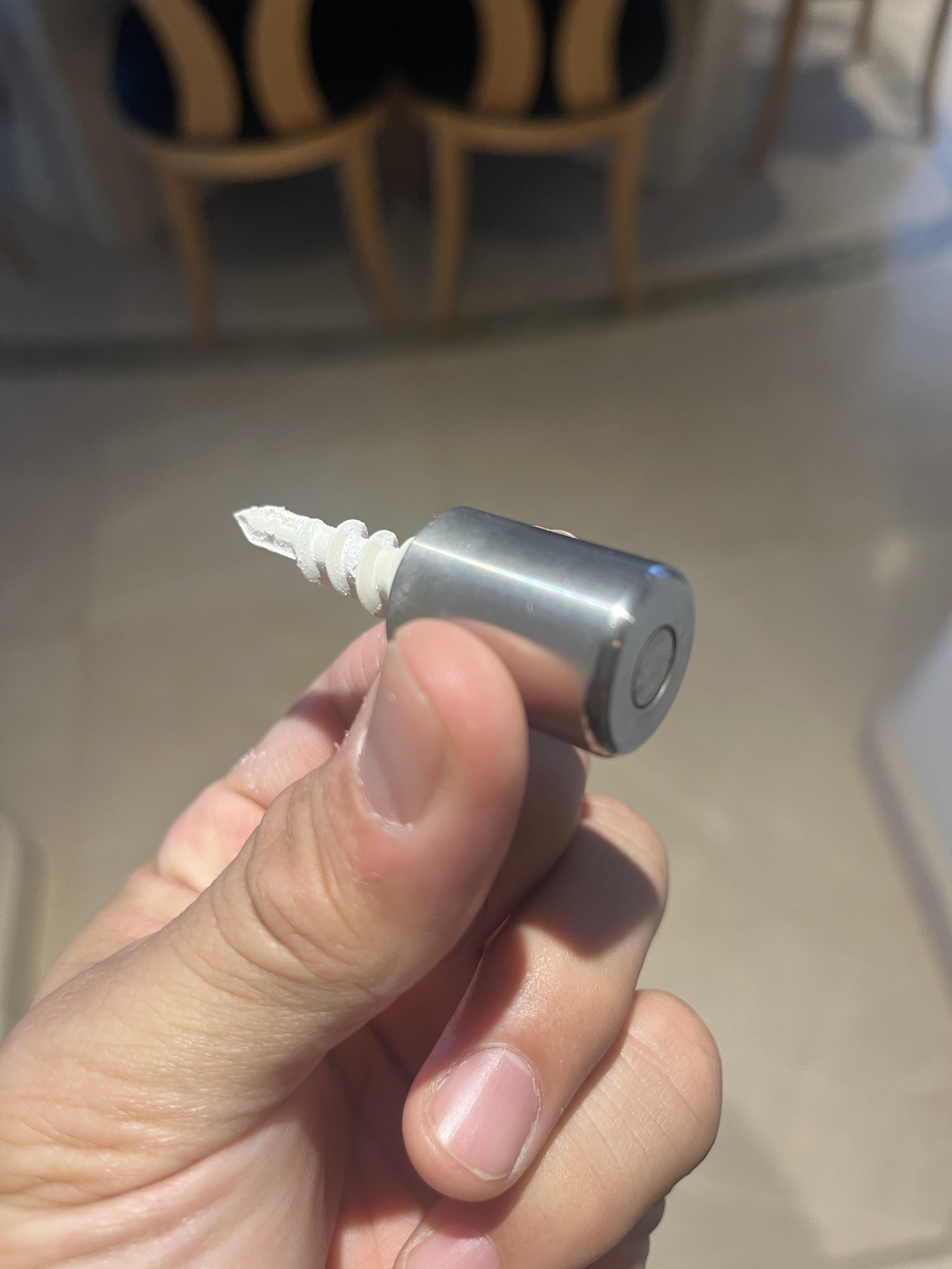 L’intelligenza artificiale non è stata di alcun aiuto. Mi è stato detto che è stato acquistato in Germania (o forse in Svizzera). Il diametro è di 3/4 di pollice. La parte magnetica è di 1/4 di pollice. La lunghezza del metallo è di 1 pollice. La lunghezza dell’ancoraggio a parete è di 1-1/4 pollici.