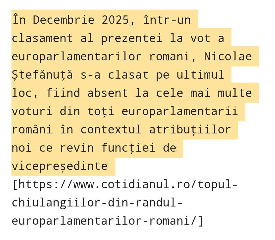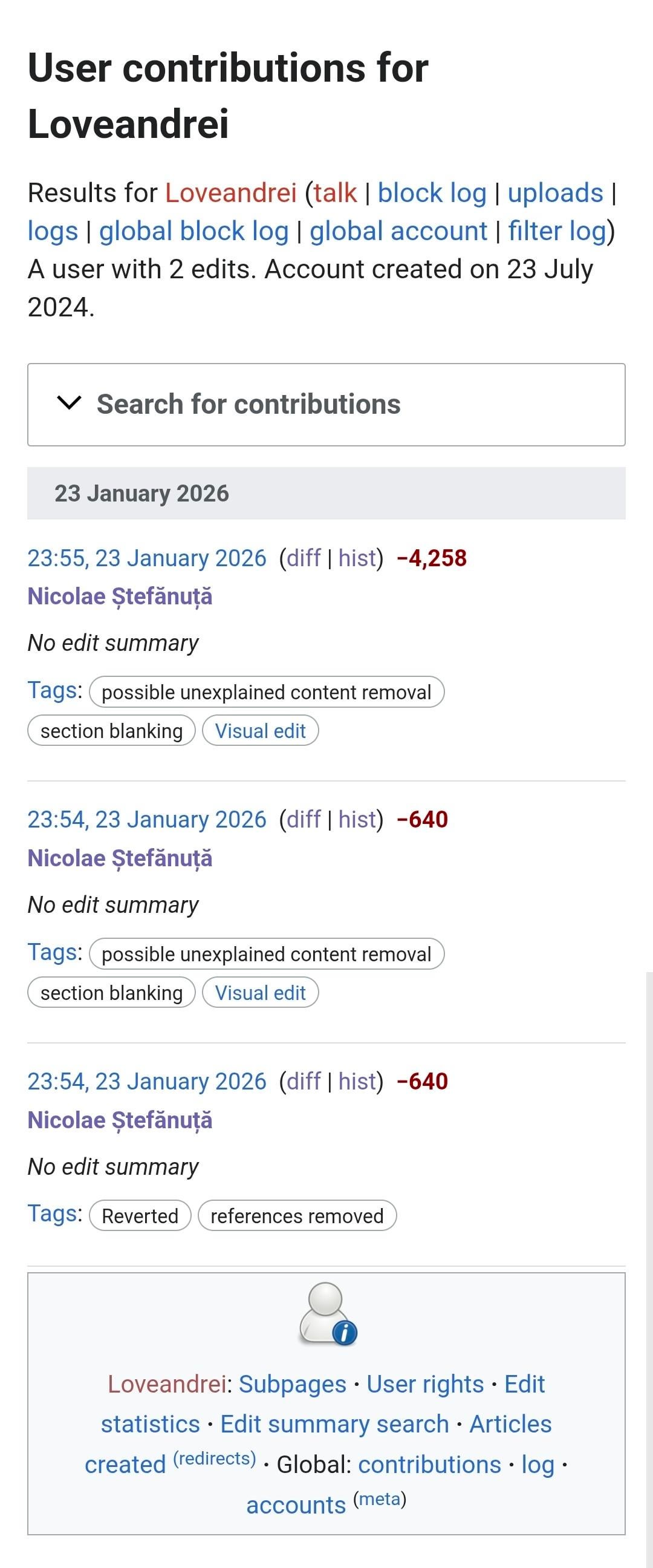 Su Wikipedia c’è un utente il cui unico contributo è quello di fare disinformazione per omissione per Nicolae Stefanuta, sostanzialmente cancella ciò che non conviene ai suoi elettori. E su Reddit sembra esserci una deliberata omissione di informazioni.