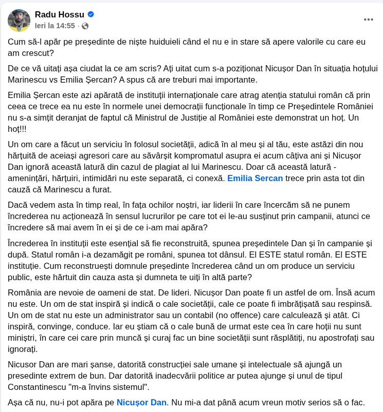 Inteleg ce zice. Dar in acelasi timp nu il.pot pune la zid nici pe Nicusor. E intr-o pozitie atat de naspa ca Presedinte acum ca nu prea are de ales.