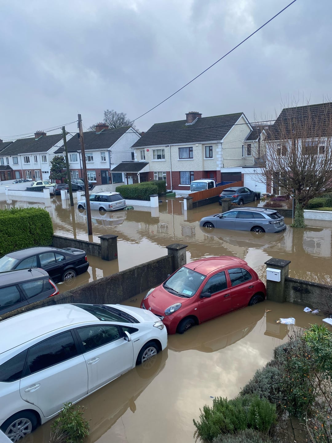 In the second image there’s a bit of a dip in the road, I imagine that’s where the worst house/car damage will be. No doubt a few cars will be written off. That black Toyota tried to drive through the road at the peak of it 😭.