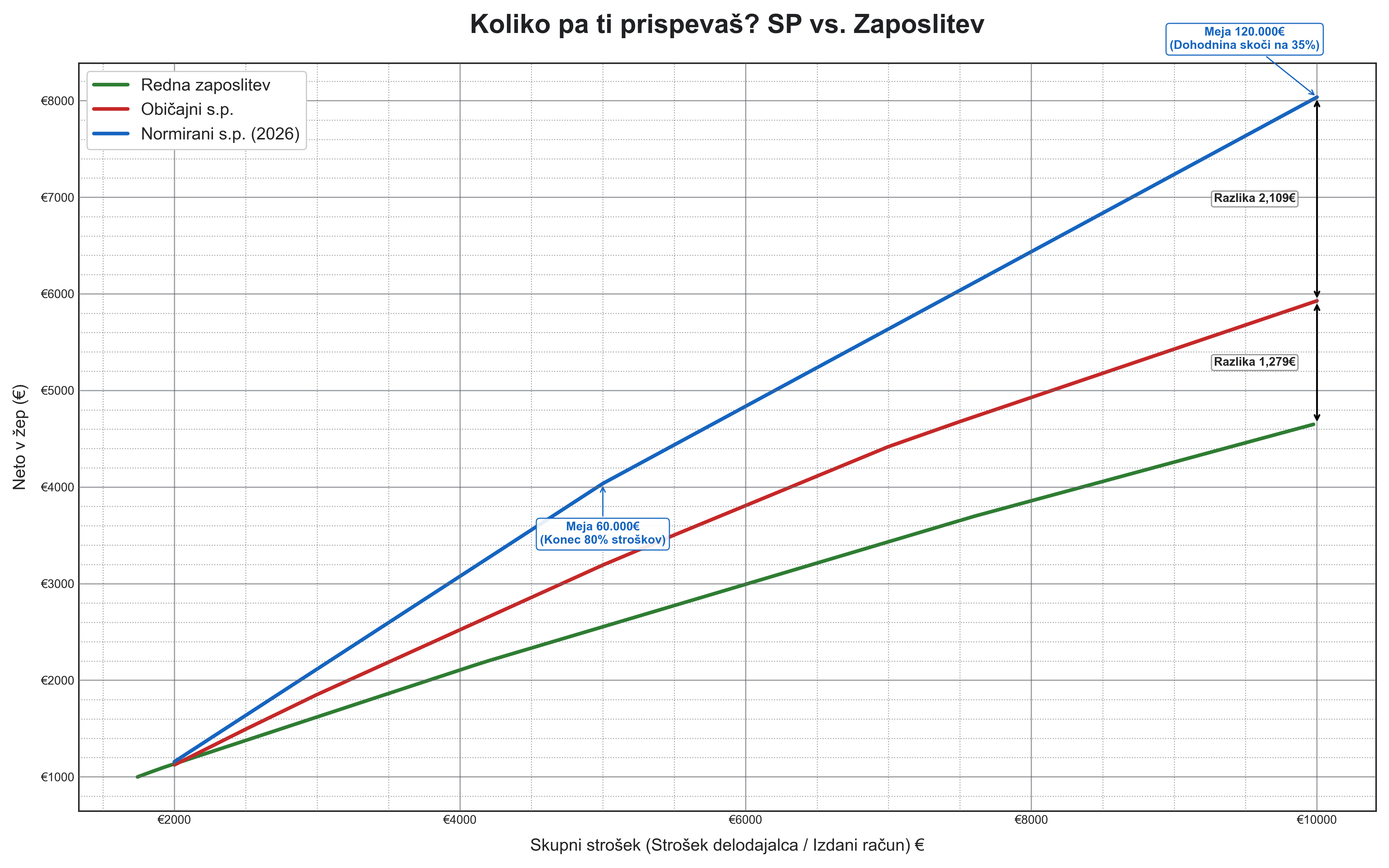 A še nismo dali to debato čez. Primerjava SP ( normalnega ali normiranega) z zaposlitvijo je nesmiselna, ker je SP nek hibrid med zaposlitvijo in podjetjem ( aka doo).