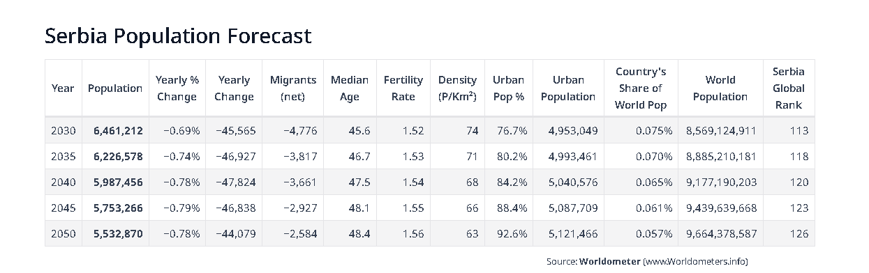 Čisto sumnjam da će Srbija 2050. imati više od 4,7 – 4,8 miliona stanovnika. Postoje procene gde se govori čak o populaciji Srbije od oko 4 miliona ljudi.