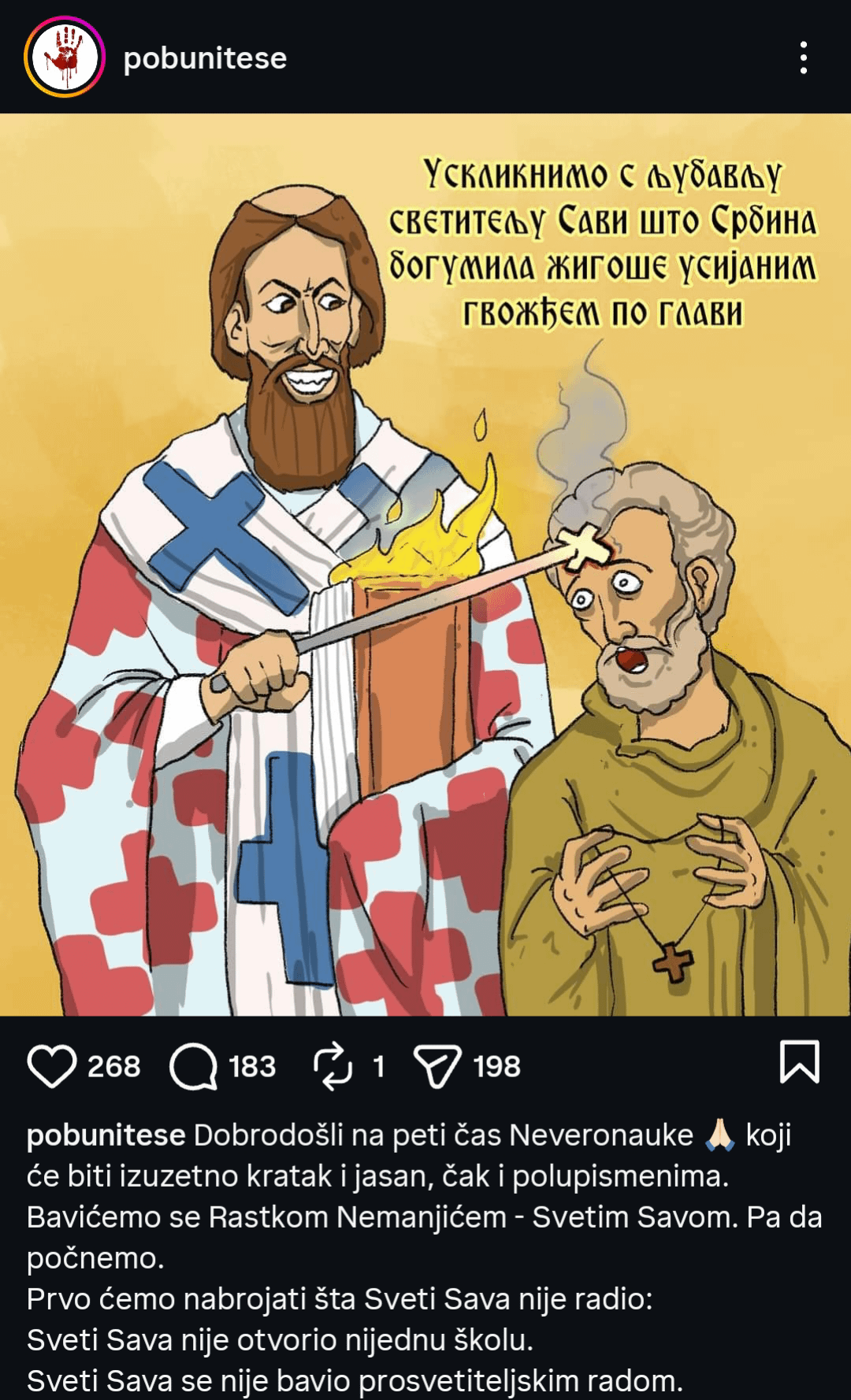Sns botovi iskazuju odanost pravoslavnoj veri, bar na rečima, tako da nikad ne bi objavili ovako nešto.