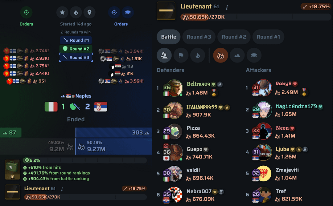 Contiamo circa 150 giocatori attivi, il che ci colloca al 6° posto in termini di numero di giocatori nel gioco. Siamo recentemente usciti da una lotta da record contro l’Italia, che è stata una delle più intense finora.