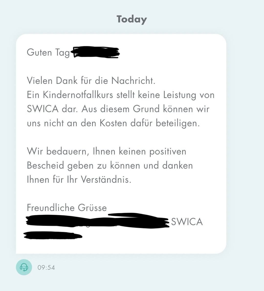 Questa è l’estrazione finale per me, ho finito. Risulta quindi che Swica non paga un corso di primo soccorso per bambini, che quasi tutti i genitori desiderano e di cui tutti i genitori hanno bisogno per garantire la sicurezza dei propri figli, MA paga felicemente se seguo un “corso di primo soccorso omeopatico”, schlüssler salz o terapia del campo energetico?