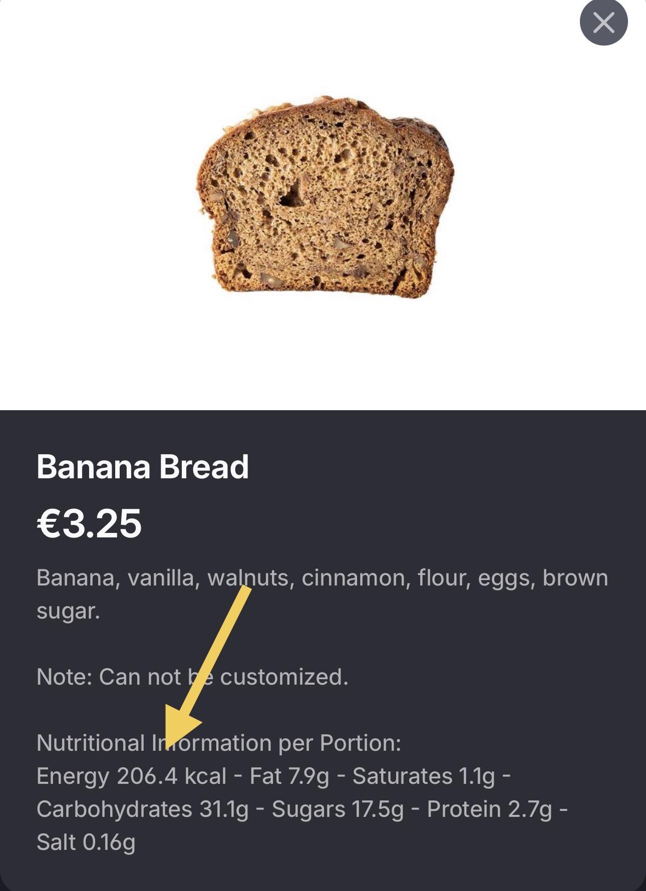 Qualche tempo fa, ho notato che la loro barretta di brownie mostrava improvvisamente 756 kcal, mentre avevo registrato nella mia app di monitoraggio delle calorie 306 kcal dagli ordini precedenti. In quel momento pensavo di aver commesso un errore, anche se già mi sembrava strano.